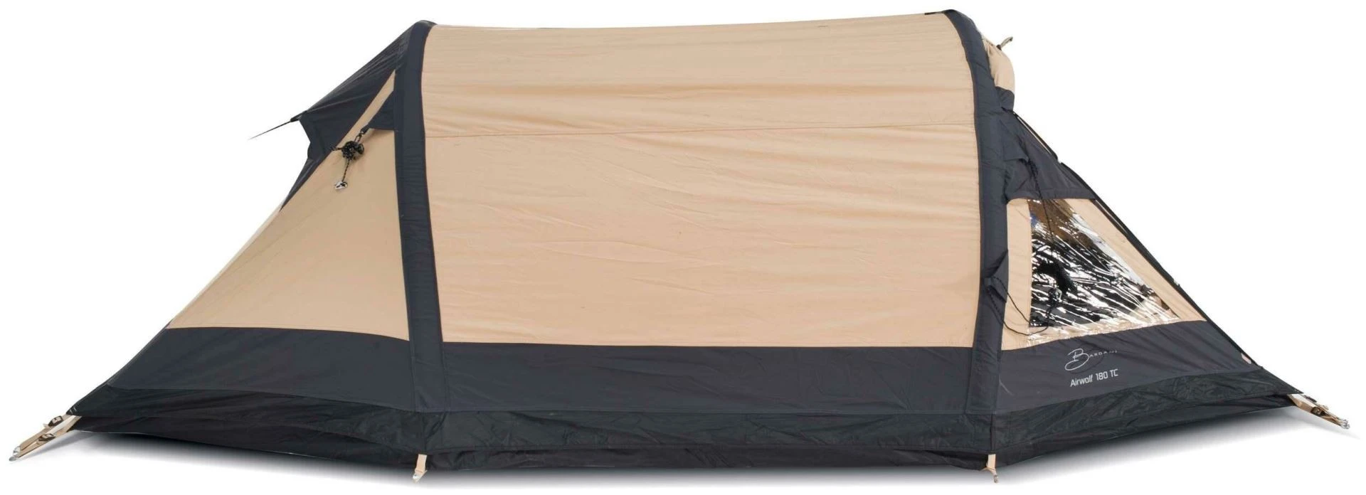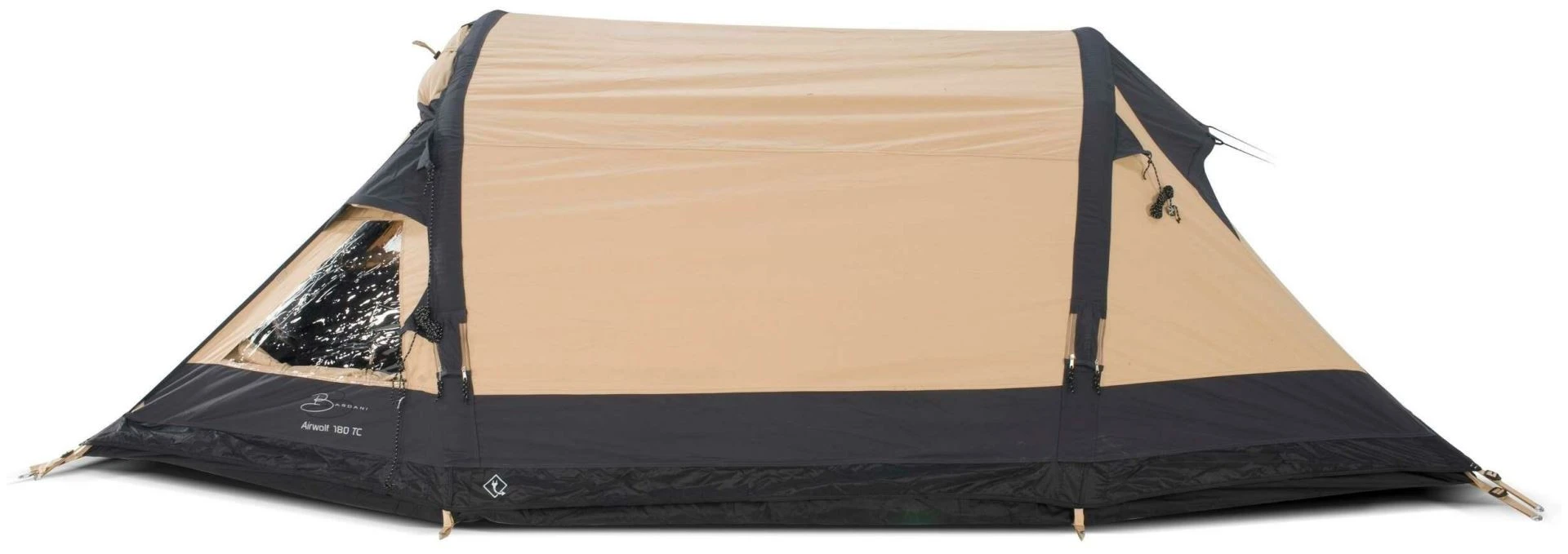 De Bardani Airwolf 180 TC is een ruime 2-persoons opblaasbare bijzettent. Door het frame van luchtbuizen is de tent in slechts enkele minuten op te zetten. De pomp wordt er bij geleverd. De slaapcabine is extra lang (230 cm) en 160 cm breed. De binnentent is ook verduisterd.