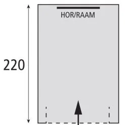 De naden zijn getapet. Aan de achterzijde zit een afsluitbaar horraam.