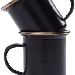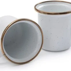 Enamel Dishware & Cookware. Zoiets kan alleen Barebones maken: Prachtig geëmailleerd stalen serviesgoed en kookgerei. De stalen schalen en pannen maken elke tafel mooier: of u nu buiten eet of een beetje buiten naar binnen brengt. Elk item heeft een met de hand afgewerkte koperen rand, waardoor het unieke stukken worden die toch samen een geheel vormen.