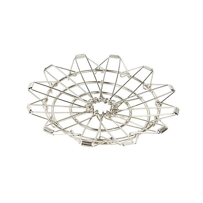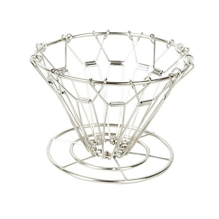 Ein robuster Kaffeefilterhalter aus Edelstahl. Dieser Kaffeefilter ist fĂĽr Filterbeutel mit 2-6 Tassen geeignet. Sehr kompakt, da der Halter flach zusammengeklappt werden kann.