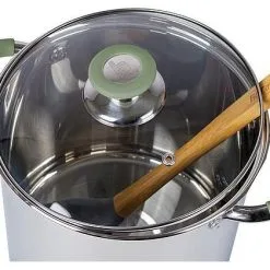 Ein extra stabiler Edelstahl-Kochtopf. Der luxuriöse Topf verfügt über solide und hitzebeständige Griffe und einen hitzebeständigen Deckelknauf. Dieser Topf ist schmal und hoch und daher ideal für den begrenzten Raum auf Gas-Ringen geeignet. Kann mit Wärmequellen aus Gas, Strom und Keramik verwendet werden.