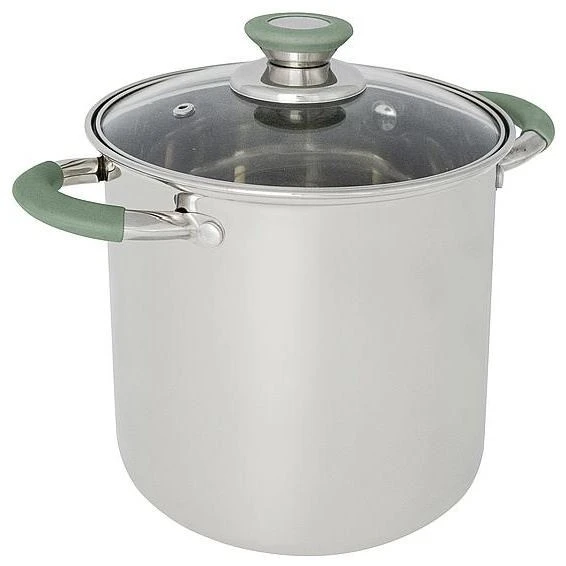 Ein extra stabiler Edelstahl-Kochtopf. Der luxuriöse Topf verfügt über solide und hitzebeständige Griffe und einen hitzebeständigen Deckelknauf. Dieser Topf ist schmal und hoch und daher ideal für den begrenzten Raum auf Gas-Ringen geeignet. Kann mit Wärmequellen aus Gas, Strom und Keramik verwendet werden.