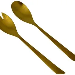 This gold salad cutlery from the Industrial collection gives your table a stylish look. The cutlery has a high-quality finish and features a matte gold design. It is a 2-piece set and is made of stainless steel and is dishwasher safe. Use this golden set for camping, at home or in the garden. Also the cutlery is easy to use!.