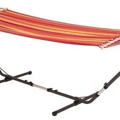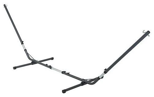 Ein robustes Hängemattengestell. Ein Stahlrahmen, der an einer Hängematte befestigt werden soll einschließlich Metallhaken. Da der Rahmen sowohl in der Länge als auch in der Höhe einstellbar ist, passt fast jede Hängematte. Geeignet für Hängematten mit einer Gesamtlänge von 285 bis 385 Zentimetern. Die Höhe ist von 105 bis 135 Zentimeter einstellbar. Die Gesamtmaße des Rahmens betragen (L x B x H): 400 x 150 Zentimeter. Maximale Tragfähigkeit: 150 Kilogramm. Maximale Tragfähigkeit: 150 Kilogramm.