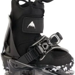 The toddlers‘ Burton Mini Grom Disc bindings let even the youngest riders enjoy the freedom of strapping in and cruising all on their own. Designed in collaboration with Burton employees and their kids, they feature a single oversize, mitten-friendly buckle and strap design for easy entry and exit.