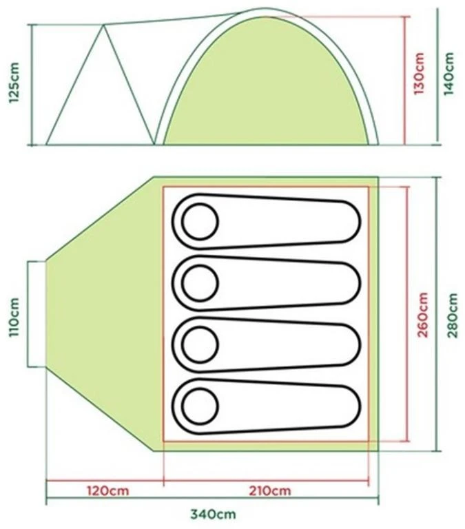 | Innenzelt | 100% atmungsaktiv Polyester |