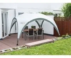 Dieser Unterschlupf besteht aus Polyester mit einer WassersÀule von 1000 mm. Die NÀhte sind zugeklebt. Wasserdicht bei leichtem Regen, aber dank UV-Schutz auf der Leinwand besonders geeignet als Schutz vor der Sonne an Sommertagen.