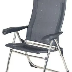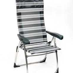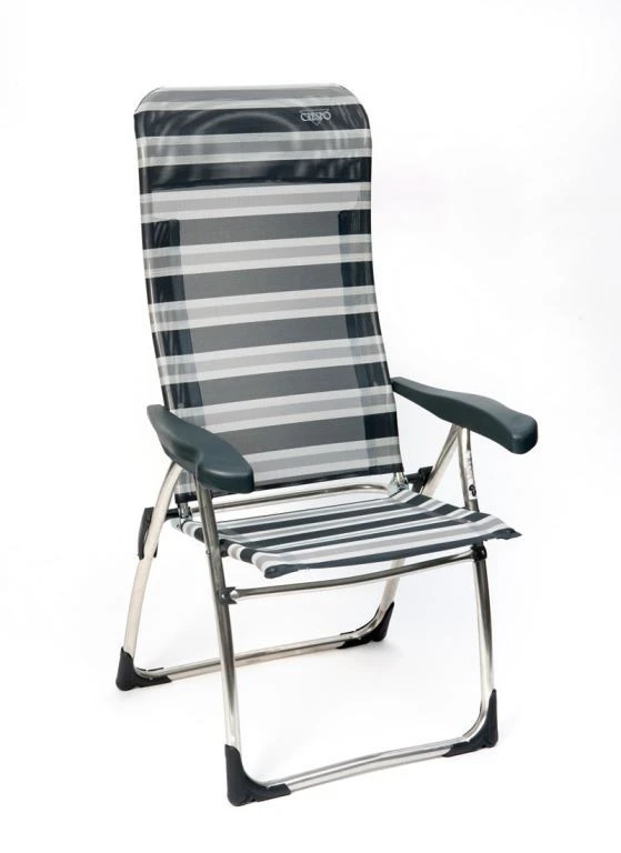 Ein leichter und sehr stabiler Klappstuhl der dank der 7-fach verstellbaren Rückenlehne maximalen Komfort bietet. Sowohl die Rückenlehne als auch der Sitz und die Armlehnen sind ergonomisch geformt. Der Stuhl hat einen U-Rahmen mit Stabilisatoren und extra dicken Rohren für zusätzliche Festigkeit und Stabilität. Dieser Klappstuhl ist platzsparend zu verstauen. Crespo stellt diesen Artikel unter Beachtung höchster Qualitätsstandards direkt in Spanien her und sorgt so für ein langlebiges und verlässliches Produkt.