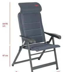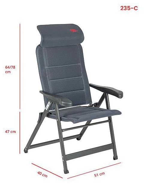 Ein einzigartiger und sehr kompakter Positionsstuhl. Der Stuhl ist mit einem gepolsterten 3D-Stoff und einer stufenlos verstellbaren Kopfstütze ausgestattet. Die bequeme Füllung dieses Stoffes ist besonders atmungsaktiv und speichert aufgrund der offenzelligen Struktur keine Feuchtigkeit. Dadurch trocknet der Stuhl viel schneller als Stühle mit einer herkömmlichen Schaumfüllung. Dieser Stuhl hat einen niedrigeren Sitz und eine kürzere Rückenlehne. Dies macht diesen Stuhl ideal für Menschen mit kürzeren Beinen. Bietet maximalen Komfort dank der 7-Positionen-Rückenlehne. Sowohl die Rückenlehne als auch die Armlehnen sind ergonomisch geformt. Der Stuhl hat ein eloxiertes H-Gestell für zusätzliche Stabilität und Robustheit. Aufgrund seines einzigartigen Designs und des niedrigeren Sitzes ist dieser Stuhl sehr kompakt und leicht zu tragen.