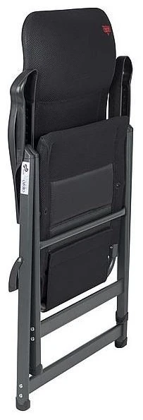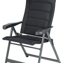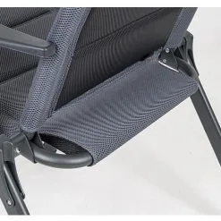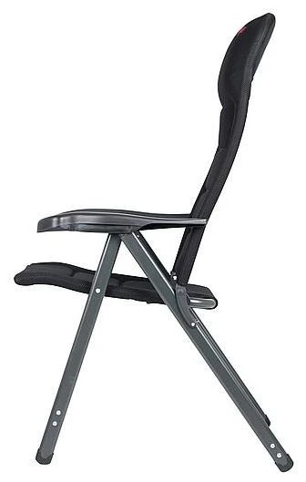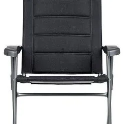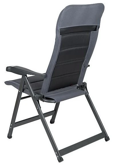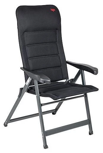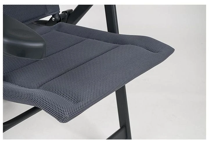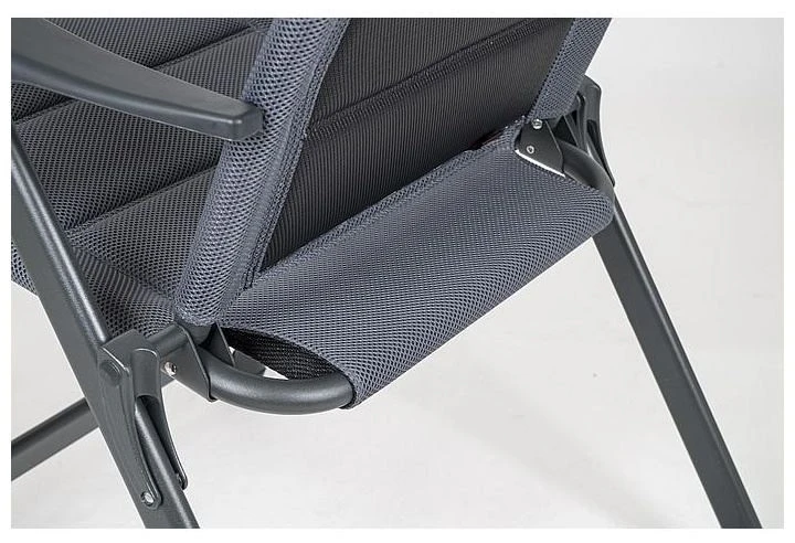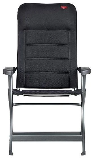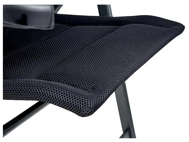Ein sehr luxuriöser, verstellbarer Klappstuhl. Dieser Stuhl bietet dank der 7-fach verstellbaren Rückenlehne und dem 3D-Polsterstoff maximalen Komfort. Die komfortable Polsterung des Stoffs ist besonders luftdurchlässig und behält durch die offene Zellstruktur keine Feuchtigkeit zurück. Das lässt diesen Stuhl schneller trocknen als Stühle mit einer herkömmlichen Schaumstoff-Polsterung. Sowohl die Rückenlehne als auch die Sitzfläche und die Armlehnen sind ergonomisch geformt. Der Stuhl ist mit einem eloxierten H-Rahmen ausgestattet, der extra Stabilität und Sicherheit gewährleistet.