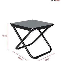Ein leichter und sehr stilvoller quadratischer Beistelltisch. Dieser Beistelltisch ist wasserdicht, kratzfest und hitzebeständig. Da der Tisch klappbar ist, kann er sehr kompakt getragen werden. Der Beistelltisch ist perfekt in Kombination mit den Liegen AP-262/263.