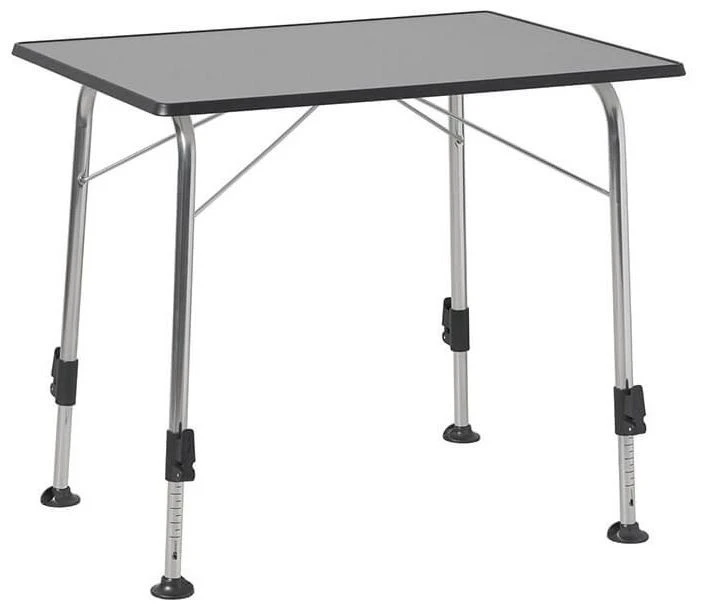 Stabile Tische mit schwerem Design Sevelit Tischplatte in grauem Stahldekor. Die Tische sind serienmäßig mit vier stufenlos verstellbaren Verstellbeinen ausgestattet. Kratz- und hitzebeständig bis 180°C. Wasserfest und UV-beständig. Stabile Tische sind besonders stabil und belastbar bis 50 kg