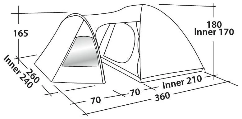 De binnentent heeft een D-vormige deur en een handig ophangpunt voor lantaarns.