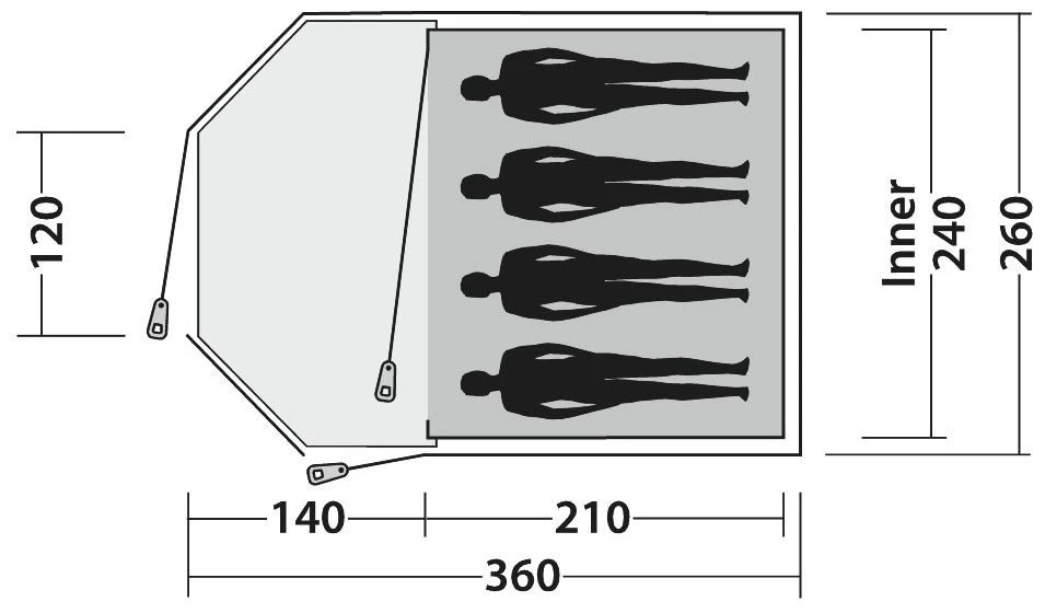 Mit Platz für vier Personen in einem Kuppelzelt mit großer Frontfläche hat das Blazar 400 ein vielseitiges Design mit Fiberglasstangen, ideal für Paare und junge Familien und Freunde. Der Frontbereich mit abnehmbarer Bodenplane verfügt über eine große Vordertür sowie eine Seitentür mit Fenstern und regendichten Lüftungsschlitzen sowie eine große Lüftungsöffnung an der Rückseite des Zeltes. Das Innenzelt hat eine D-förmige Tür und einen praktischen Aufhängepunkt für Laternen.