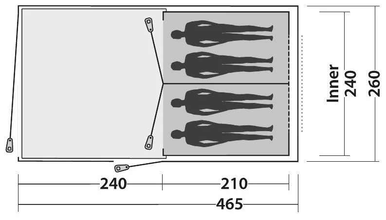 Das Design des Galaxy 400 mit drei Stangen verfügt über einen großzügigen Schlaf- und Wohnraum, der es für Paare, Freunde und junge Familien geeignet macht. Das Zelt hat zwei Eingänge, Fenster im vorderen Raum mit Vorhängen, eine abnehmbare Bodenplane im vorderen Raum mit Lüftungslöchern. Dank der zuverlässigen Eigenschaften des Zeltes ist es eine ausgezeichnete Wahl für Menschen, die vielseitigen Campingkomfort suchen.