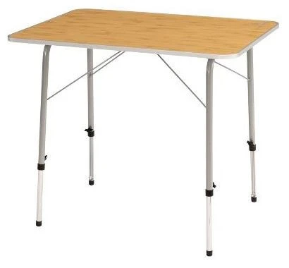 Genießen Sie das Essen im Freien mit dem Klapptisch Easy Camp Menton M. Dieser kompakte Tisch wurde für Abenteuer entwickelt und bietet bequem Platz für zwei Personen und bietet Platz für bis zu vier Camper. Mit zusätzlichen Querstrebenstützen für zusätzliche Stabilität können die Stahlbeine angepasst werden, um unebenen Boden zu bekämpfen, so dass Sie immer eine ebene Oberfläche haben. Das elegante, mit Bambus laminierte MDF-Oberteil ist spritzwassergeschützt und duschwassergeschützt und leicht zu reinigen.
