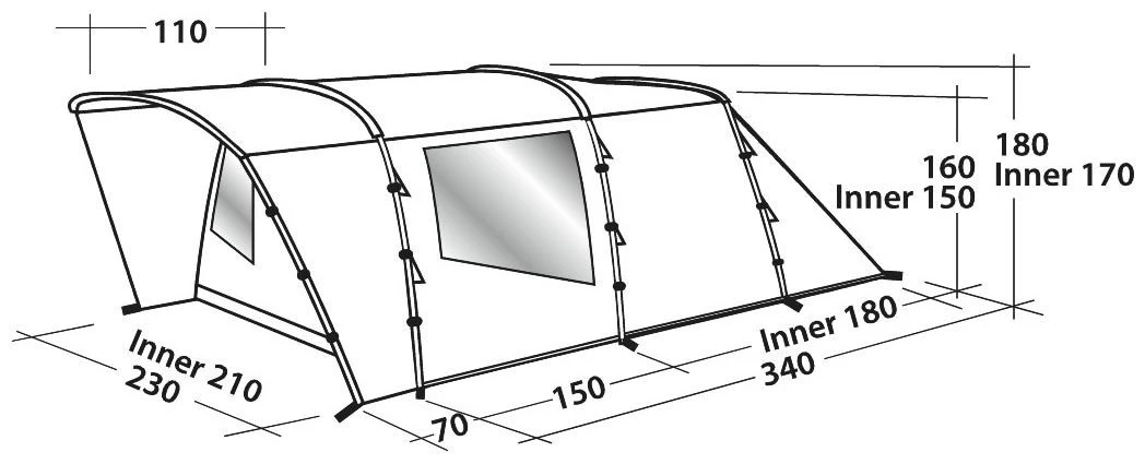 Ideal for a small family, the Palmdale 300 sleeps three comfortably in a large bedroom. With colour-coded fibreglass poles and pole sleeves, youll find it fast and easy to pitch. A sewn-in groundsheet cuts out draughts whilst generously-sized twin windows in the living area let light flood in. The deep canopy over the front door, with mesh insect screen, and windows offers extra shelter for access, cooking and storing bikes..