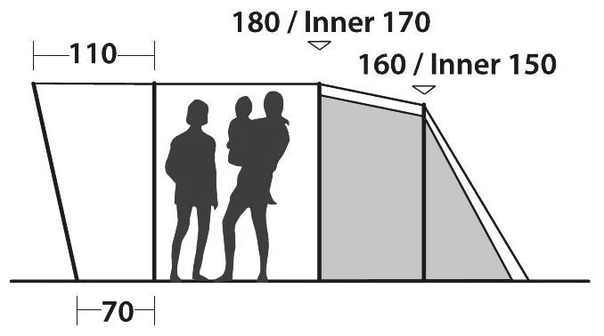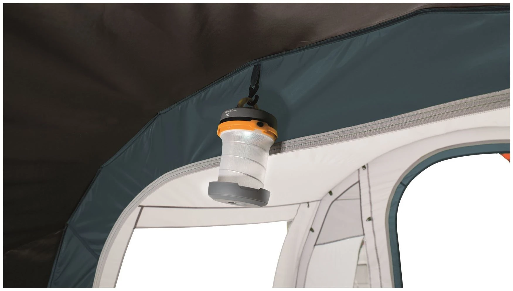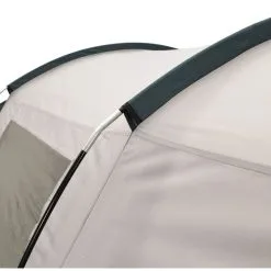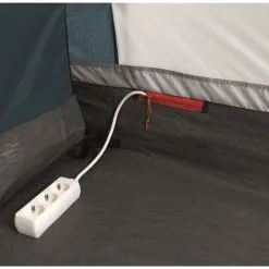 Das Palmdale 300 eignet sich ideal für eine kleine Familie und bietet in einem großen Schlafzimmer bequem Platz für drei Personen. Mit farblich gekennzeichneten Fiberglasstangen und Stangenhülsen finden Sie es schnell und einfach zu platzieren. Eine eingenähte Bodenplane schneidet Zugluft aus, während großzügige Doppelfenster im Wohnbereich Licht hereinlassen. Das tiefe Vordach über der Haustür mit Insektenschutzgitter und Fenstern bietet zusätzlichen Schutz für den Zugang, das Kochen und das Aufbewahren von Fahrrädern.