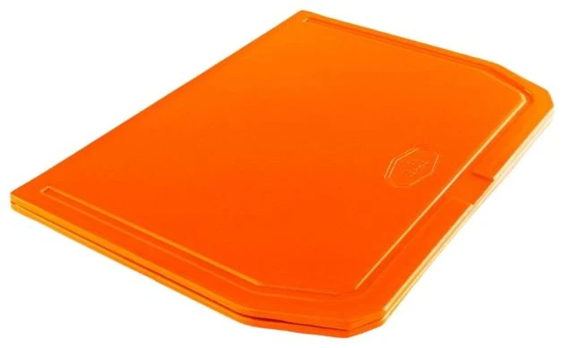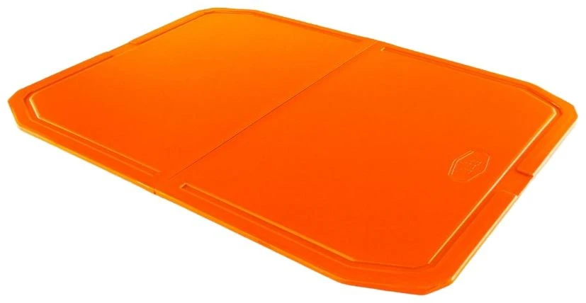 Het Folding Cutting Board van GSI Outdoors helpt je om op de camping ook gemakkelijk je groente en vlees te kunnen snijden.