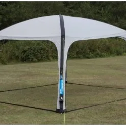 Das AIR Shelter ist einfach aufzubauen, mithilfe der mitgelieferten Handpumpe gelingt auch das Aufblasen in kürzester Zeit. Einfach die vier Ecken mit Heringen fixieren und an den beiden Einfüllpunkten an der Außenseite aufblasen. Auf der Unterseite des Schutzzeltes gewährleisten Spannschnüre die quadratische Form, während langlebige fluoreszierende Abspannschnüre und die mitgelieferten Heringe das Schutzzelt stabilisieren.