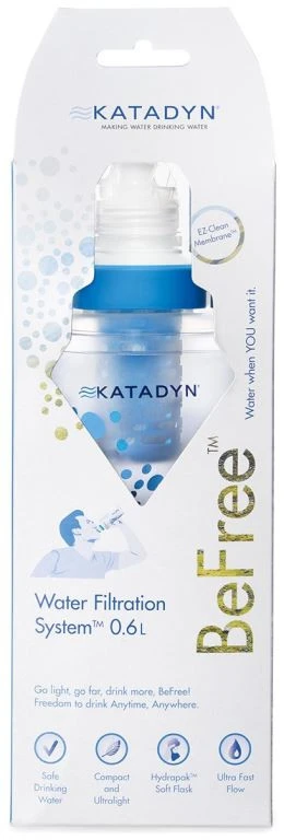 De sterke en flexibele Hydrapak-drinkfles is klein op te bergen als hij leeg is, maar geeft toch ruim een halve liter gefilterd drinkwater door simpelweg te knijpen in de fles. Het filter wordt op de fles gedraaid en heeft een handige drinktuit, de Stay Clean Drink Nozzle. Afhankelijk van de kwaliteit van het water, kan het filter tot wel 1.000 liter water reinigen. De BeFree filtert geen virussen of nare smaakjes, daarvoor wordt aangeraden desinfecterende druppels te gebruiken in combinatie met het filter.