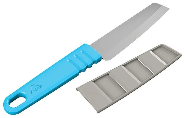 Our Alpine Kitchen Knife is made from hardened stainless steel and its 4.5″ Santoku-styled blade excels as speedy chopping and prep work, while holding its edge against heavy use. It comes in a light, ventilated protective sheath for easy and safe packing.