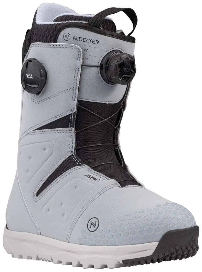 The Altai-W is the centrepiece of our new women’s boot collection, offering premium features and freeride-friendly support at an unbeatable price. It’s built around an asymmetrical upper that fits perfectly with Nidecker and Flow binding straps, eliminating pressure points. The Dual BOA lacing system features textile-coated laces and twin dials to allow you to control the upper and lower sections independently.