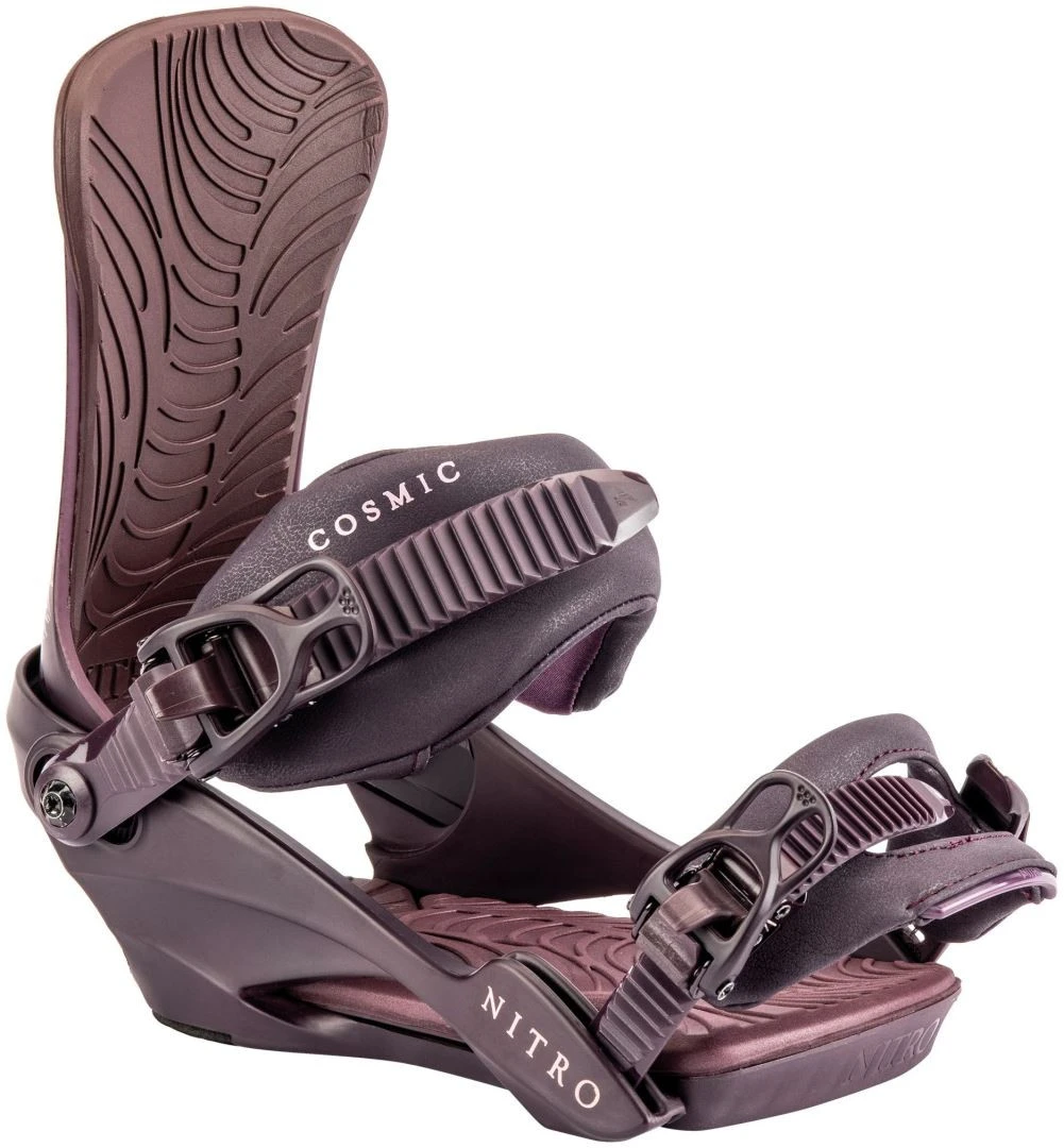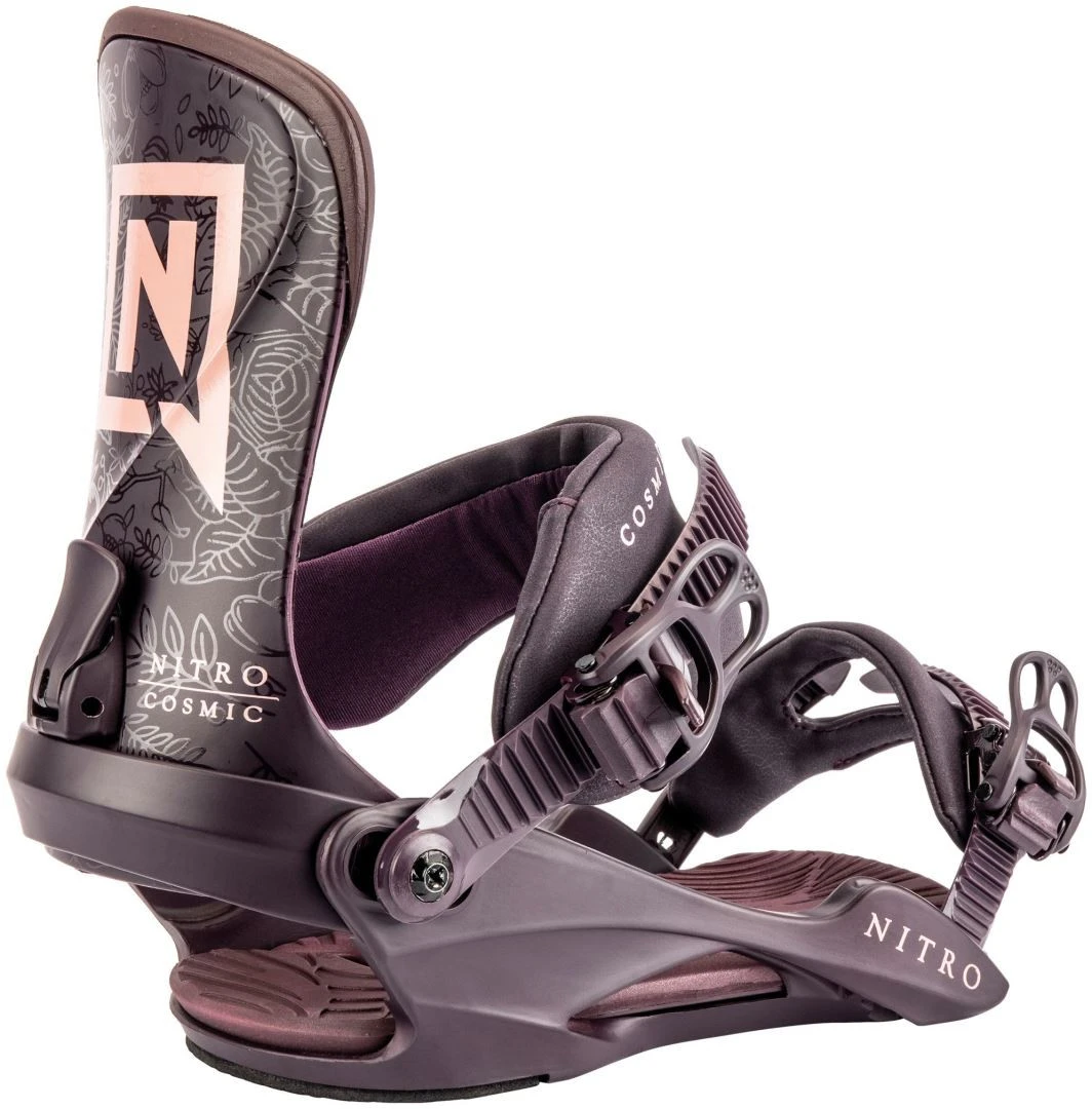 The women´s Cosmic binding offers a comfortable fit out of this world, equipped with Nitro´s user-friendly technologies and solutions to create the most versatile flex and response for riding the entire trail map with ease.