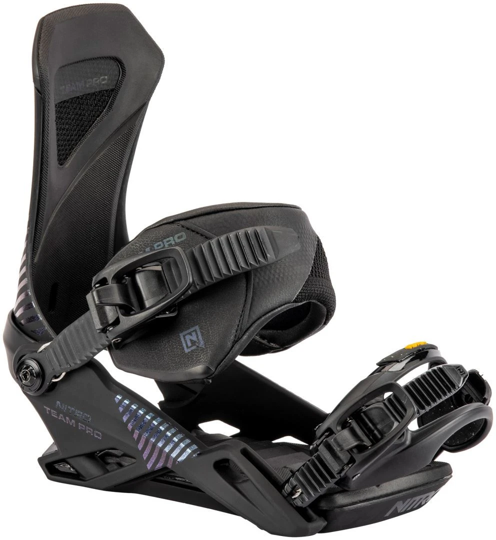 The well-equipped Team Pro is our most professionally qualified freestyle binding because of its snug fit, responsive straps, and overall durability! Inspired by Nitro’s pro team’s desire to continue pushing the boundaries of what is possible, the Team Pro’s responsive Pro Highback is equipped with a heavy-duty forward lean adjuster. It has an upgraded Premium Lockdown Ankle Strap for increased precision and confidence during crucial moments before and after take off. The 3° Canted Footbed, Air Dampening, and Stealth Air Base Frame provide a comfortable fit and surface area to allow riders to send it all day long. As we all know, and especially riders like Marcus Kleveland and Torgeir Bergrem, the binding is the most crucial part of your overall setup; that is why Nitro has focused on creating the ultimate interface for over 30 years. You should not be thinking about your binding; that is why the Team Pro has been equipped with the new Ăśbergrip Toe Strap with Vibram© EcoStep™ rubber and Cable reinforced Connectors and Ratchets for increased durability and unparalleled strength. If you are looking for a top-shelf pro-caliber binding to help you push your limits, then do like the Nitro Pro Team and strap into a pair of Team Pro bindings!