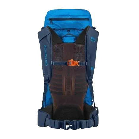 For the PEAK LIGHT, we have concentrated on the important features and dispensed with anything unnecessary. Of course, the PEAK LIGHT has all the important features such as a rope and ice axe fixation, load control cords, helmet net, material loops, hip pocket, a map compartment and the circumferential zipper for quickly accessing the main compartment from the front. Safety equipment is held securely inside thanks to the safety attachment. In addition, the standard ORTOVOX features include an emergency card, chest strap with signal whistle, compression strap, bright interior color, hydration system compatibility and a ski holder.