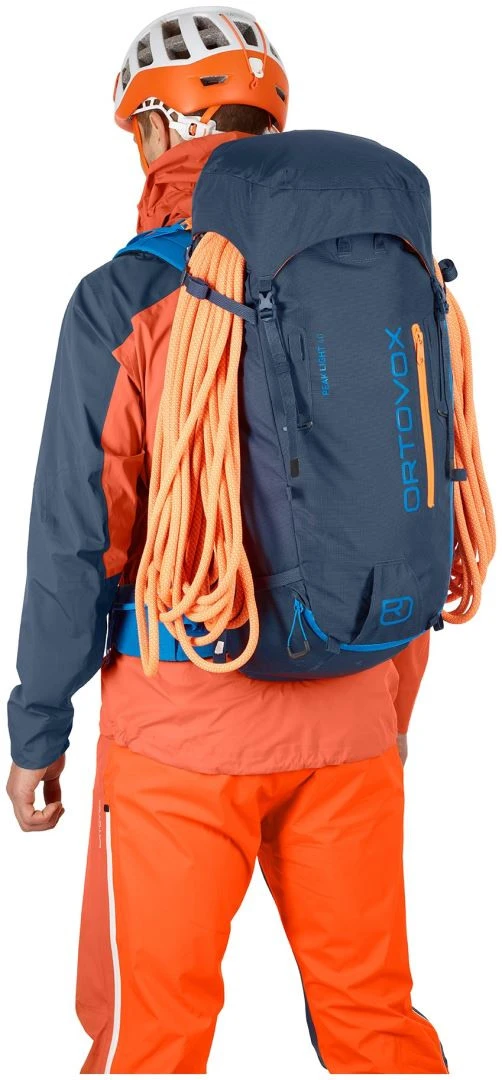 Und wir haben weitere wichtige Features integriert: Der PEAK LIGHT 40 Alpin-Tourenrucksack verfügt über eine Seil- und Eispickelfixierung, Lastkontrollschnüre, Helmnetz, Materialschlaufen, Hüfttasche, ein Kartenfach und einen umlaufenden Reißverschluss für einen schnellen, frontalen Zugang zum Hauptfach. Die Sicherheitsausrüstung wird mittels eines Sicherheitsaufsatzes sicher im Inneren gehalten. Zu den serienmäßigen ORTOVOX-Rucksackmerkmalen gehören außerdem eine Notfallkarte, ein Brustgurt mit Signalpfeife, ein Kompressionsgurt, eine helle Innenfarbe, eine Kompatibilität mit dem Hydrationssystem und eine Skihalterung. Diese cleveren Features, das geringe Gewicht und das innovative Rückensystem machen den PEAK LIGHT zu einem hochfunktionellen alpinen Tourenrucksack, bei dem auf mehr Funktionalität verzichtet wird.