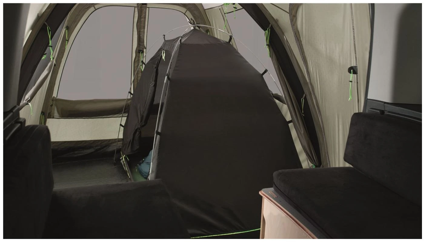 Youll appreciate the smart attachment system that lets you have full use of the car side door without blocking access and a wheel attachment system making it possible to camp on hard ground. The flexible link access zone makes it really easy to enter the tent from either side and when it rains you can leave the top of the main door open, under the deep canopy, for even more ventilation.