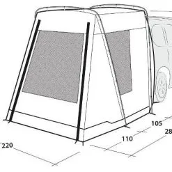 An ideal choice for couples and families seeking to extend the use of small vans on outdoor adventures, the tailgate-mounted Outwell Dunecrest vehicle awning offers great standing height, large mesh windows with waterproof curtains, detachable groundsheet, easy access and the option to use the main door as a canopy.