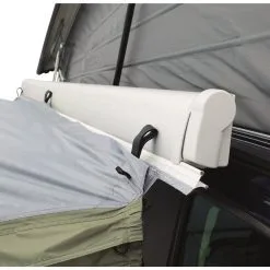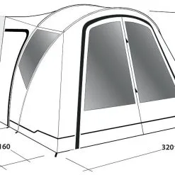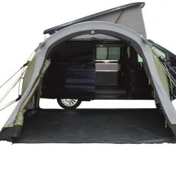 Das freistehende Outwell Busvorzelt Lakecrest ist leicht und kompakt. Das gut zu lüftende Vorzelt hat neben den zwei seitlichen Netzfenstern, ein weiteres Netzfenster und ein getöntes Folienfenster in der breiten Vordertür. Alle Fenster lassen sich mit einem innenliegenden Zip-Up-Vorhang verschließen. Der einfache Aufbau gelingt schnell durch die zwei leichte Aluminium-Gestängebögen. Wird die Frontwand vollständig eingerollt und der hochgezogene Zeltboden entfernt, kann es auch als großzügiges Vordach verwendet werden. Im Schleusenbereich befinden sich zwei gegenüberliegend Eingänge, die auch bei schlechtem Wetter einen guten Zugang zum Fahrzeug oder Zelt ermöglichen. Durch die im Lieferumfang enthaltene Bodenplane für den Schleusenbereich und die komplett öffenbare Rückwand, kann der Innenraum vergrößert und ideal genutzt werden.