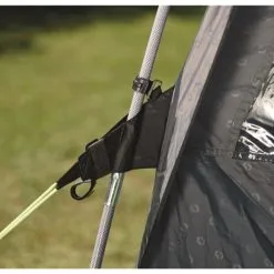 Perfekt für kleinere Stellplätze bietet die kuppelförmige Milestone Shade Auffahrmarkise eine Seitentür in der Access Zone mit Gurtschnalle zur Höhenverstellung sowie eine Seitentür auf der gegenüberliegenden Seite des Zeltes. Einfache und schnelle Befestigung an Wohnmobilen mit einem Höhenbereich von 175cm-200cm. Eine Falte an der Vordertür wird von insektenfestem Mesh unter einem Augenbrauendach unterstützt, während ein verdecktes Mesh-Panel am Scheitel der Markise die Belüftung unterstützt.