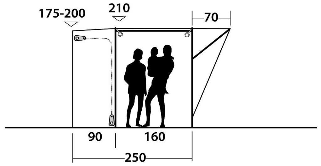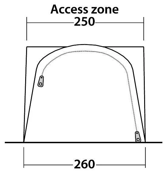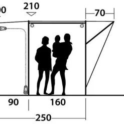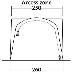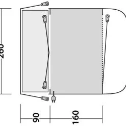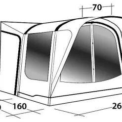 Die Tunnelkonstruktion des frei stehenden Vorzelts Newburg 160 wird durch eine mittig im Dach verlaufende Stange gestützt. Das Vorzelt verfügt über zwei Türen auf beiden Seiten der Link Access Zone und eine Gewebebahn zur Höhenverstellung an der Innenseite. Das Vorzelt lässt sich mithilfe eines Doppel-Keders (5 und 7 mm) schnell und einfach an Bussen mit einer Höhe zwischen 175 und 200 cm anbauen. Die flach zusammenfaltbare Vordertür unter dem abgerundeten Vordach ist mit einem Moskitonetz ausgestattet.