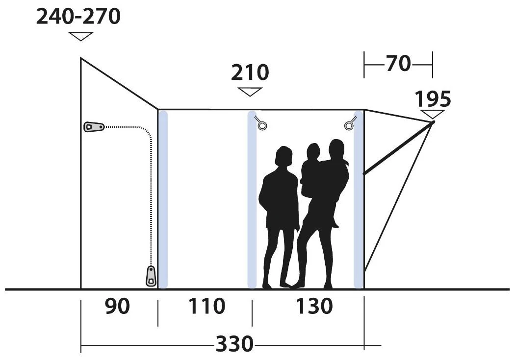 Das aufblasbare Outwell Newburg 240 Hochbrustzelt lässt sich einfach und schnell an beiden Seiten Ihres Wohnmobils befestigen. Es ist ideal für Freunde, Paare auf der Suche nach mehr Platz und Familien mit wachsenden Kindern, die ihren eigenen Platz wollen. Das Tunnelzelt hat eine Seitentür mit einem Insektenschutzgitter. Es gibt auch eine Tür auf beiden Seiten der Link-Zugangszone, die mit Ihrem Wohnmobil verbunden ist. Durch die Anpassung an Ihre Bedürfnisse und Wetterbedingungen können Sie die Belüftung variieren. Die faltbare Haustür mit Insektenschutznetz unter einer gekrümmten Markise ermöglicht es Ihnen, das Zelt zu öffnen, um mit der Natur in Kontakt zu sein. Ein optionales Innenzelt für zwei Personen bietet zusätzlichen Platz für ein Schlafzimmer oder Stauraum im Wohnmobil. Du musst es nicht packen, wenn du auf einem Outdoor-Abenteuer unterwegs bist, da du es auf deinem Stellplatz als Zuhause stehen lassen kannst, das auf dich wartet, wenn du zurückkehrst.