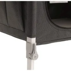 Sekundenschneller Auf- und Abbau. Große Bambusarbeitsfläche. Schrank mit zwei Böden, Tür mit Reißverschluss und Lüftungsöffnung aus Netzstoff. Vier Taschen an der Seite des Schranks. Griff zum einfachen Tragen im zusammengeklappten Zustand. Inklusive Tragetasche für einfache Lagerung und Transport.