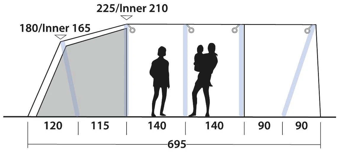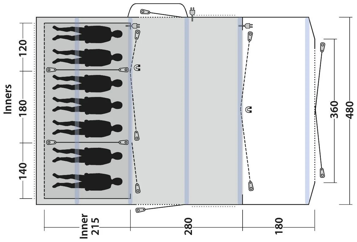 Das Sundale 7PA beherbergt sieben Personen in drei Premier-Schlafkabinen mit Panorama-Aussicht. Sein Drei-Zonen-Design bietet auch großen Familien reichlich Platz zum Wohnen. Der Quick & Quiet Access zwischen den äußeren und inneren Zonen sowie der regengeschützte Seiteneingang sorgen zudem für einen einfachen und flexiblen Zugang zum Zelt. Das Rear Ventilation System bietet verschiedene Belüftungsmöglichkeiten: von vollständig geöffnet bis dicht verschlossen dank Reißverschluss.