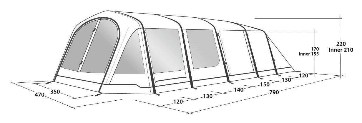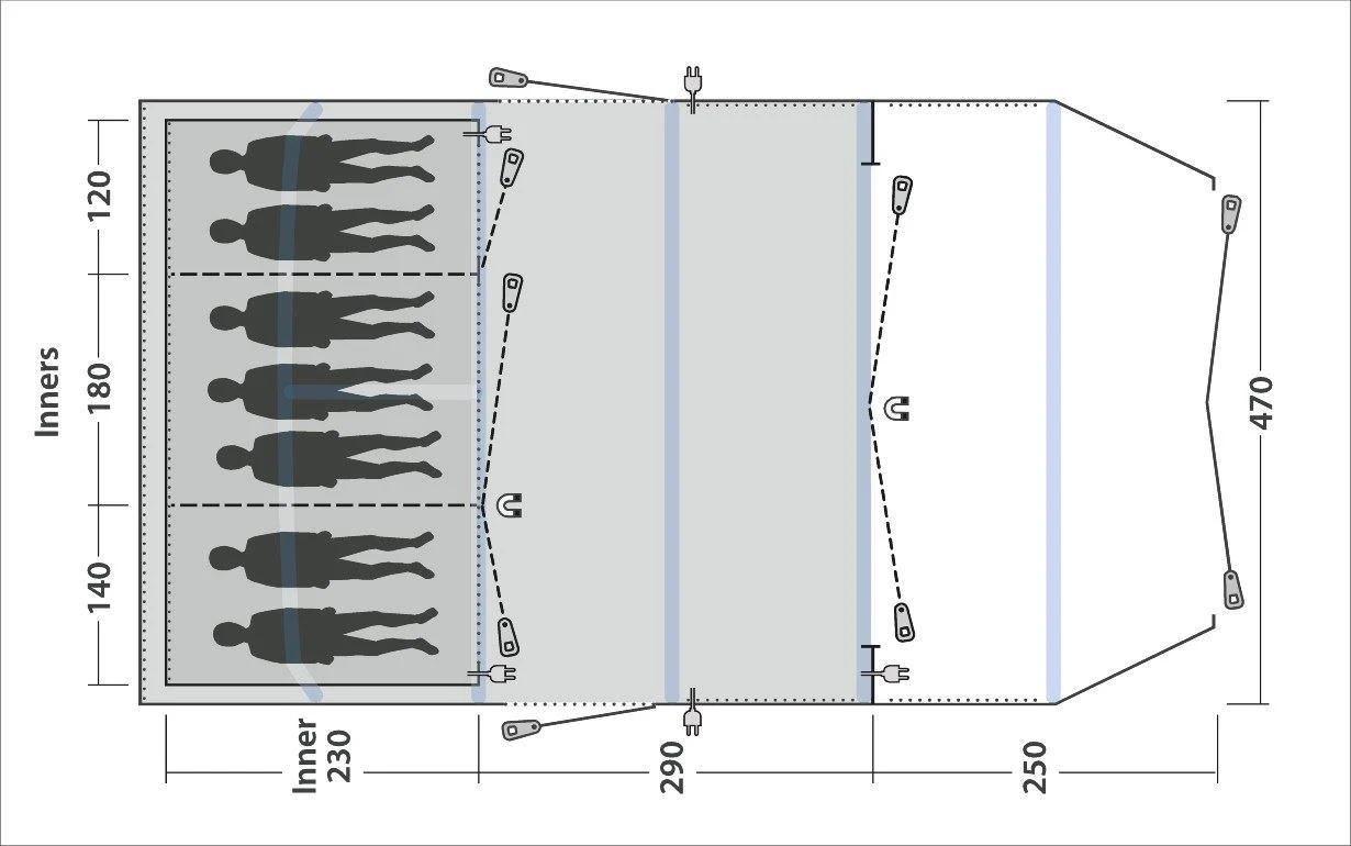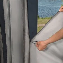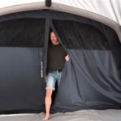 Das Wood Lake 7ATC mit Quick & Quiet Access bietet Platz für bis zu sieben Personen in drei 230 cm großen, abgedunkelten Master-Schlafkabinen vom Typ Ambassador, die mit Outwell Quick & Quiet Inner Doors ausgestattet sind. Vorgebogene Luftschläuche gewährleisten die Stabilität und schaffen reichlich Kopffreiheit. Die steilen Seitenwände optimieren zudem den nutzbaren Raum im Inneren, der mit einem langlebigen Zeltboden aus Polyethylen versehen ist. Das Outwell Easy Access Front Door System lässt sich vollständig öffnen. Zudem verfügt das Zelt im vorderen Bereich über einen herausnehmbaren, wannenförmigen Zeltboden sowie über eine Tür mit Moskitonetz am Eingang zum zentralen Bereich.