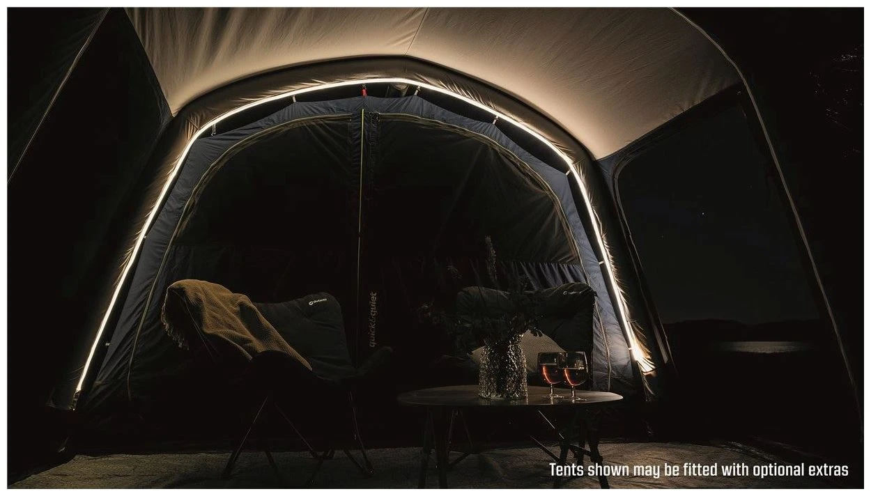Der Outwell Wood Lake 7ATC ist ideal für größere Familien, die eine Kombination aus erhabenem Stil, hervorragender Qualität und außergewöhnlicher Leistung für ein optimales Camping-Erlebnis suchen. Dieses Luftzelt verfügt über 3 Zonen mit allem Platz, den Sie sich wünschen können. Perfekt als Ausgangspunkt für abenteuerliche Ferien unter freiem Himmel. Mit seiner großzügigen Raumaufteilung und dem großzügigen, flexiblen Raum eignet sich das Zelt perfekt für größere Familien und zum gemeinsamen Urlaub mit Freunden. Durch das technische Baumwollgewebe bleibt die Innentemperatur angenehm, ideal in der Wärme Südeuropas, aber auch an kälteren Tagen. An besonders warmen Tagen können Sie durch die Netztüren auf beiden Seiten des Wohnbereichs für mehr Belüftung sorgen. Dank des optionalen Leuchtensets zeigt IHNEN das beruhigende Outwell Nightlight System (patentiert) am Eingang bei Dunkelheit den Weg und schafft abends eine gemütliche Atmosphäre im Zelt.
