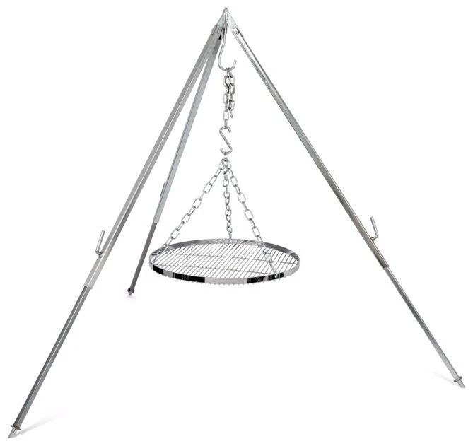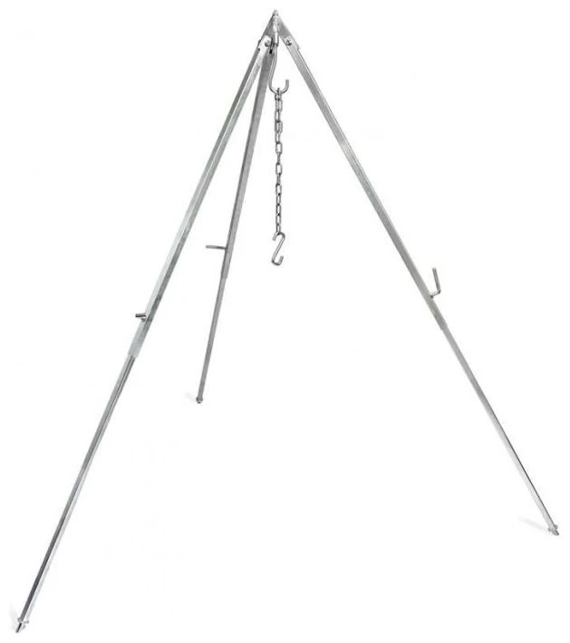 Een zeer stabiele 3-poot. Deze 3-poot is ideaal om de Dutch Oven aan te bevestigen en de pan vervolgens boven het vuur op te hangen. Beschikt over verstelbare poten, zodat deze ook op een ongelijke ondergrond stabiel kan worden afgesteld. De driepoot kan op verschillende hoogtes worden afgesteld. Ook geschikt om met andere pannen te koken boven een kampvuur.