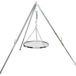 Ein sehr stabiles Stativ. Dieses Stativ ist ideal, um den Dutch Oven anzubringen und dann die Pfanne über das Feuer zu hängen. Es hat verstellbare Beine, so dass es auch auf unebenen Oberflächen stabil eingestellt werden kann. Das Stativ kann auf verschiedene Höhen eingestellt werden. Auch zum Kochen mit anderen Pfannen über einem Lagerfeuer geeignet.