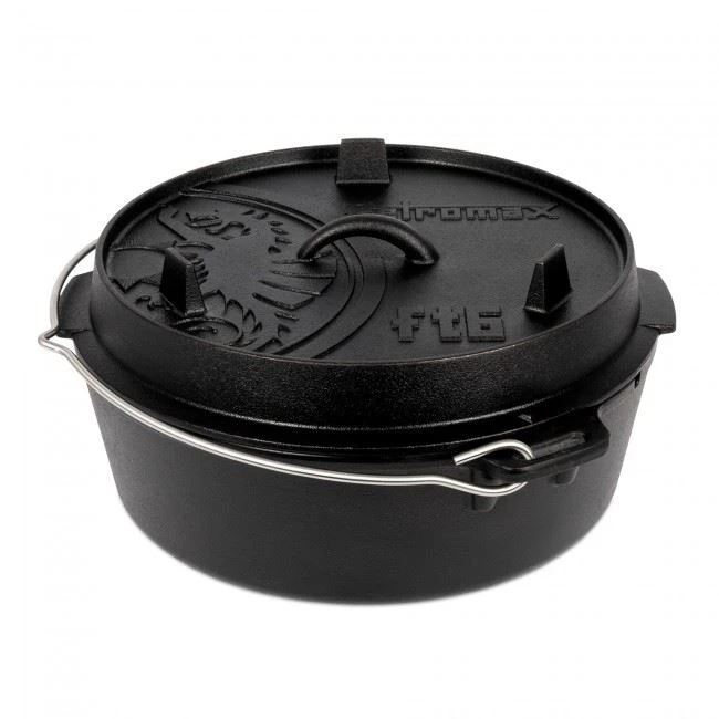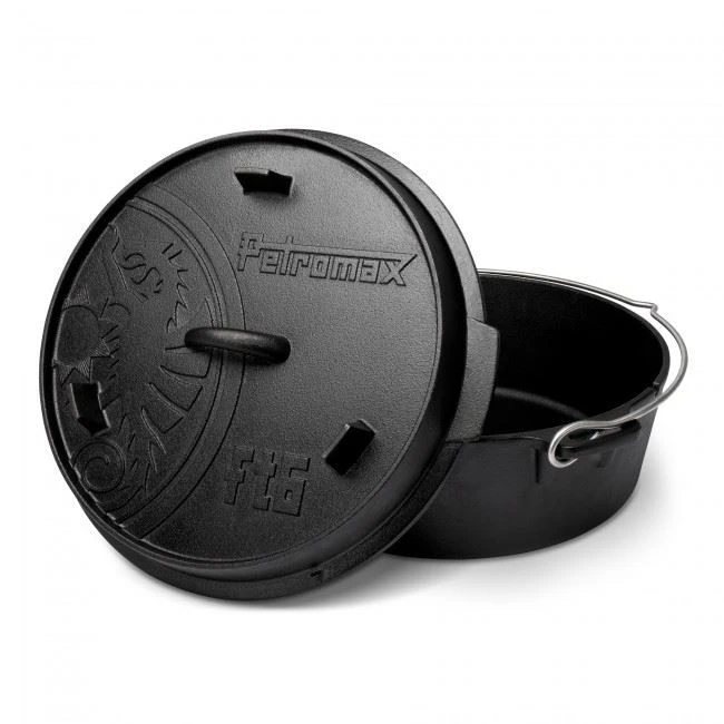De FT-6-T is heeft dezelfde diameter als de traditionele FT-9-T maar is net iets lager. Hierdoor heeft hij een iets kleine inhoud maar is hij zeker niet minder multifunctioneel. De Petromax FT-6-T heeft een inhoud van 5,5 liter en past perfect in een Petromax Atago. De onderkant van de pan is glad afgewerkt waardoor hij ook te gebruiken is op een inductiekookplaat.