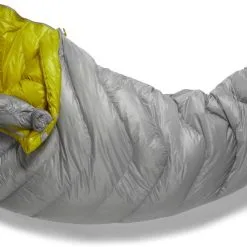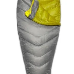 The chevron style baffle design keeps the down in position, optimising core warmth and reducing the amount of fabric needed compared to traditional horizontal baffles. The outer is made from our own wind and water-resistant, Atmos™ fabric. At just 7D with a built-in ripstop, it’s both ultra-light and super tough. It has a narrow mummy shape to minimise bulk, lightweight zips and pullers, and comes with a lightweight, waterproof, roll top compression sack for protection from the elements and a small pack size while on the move.