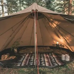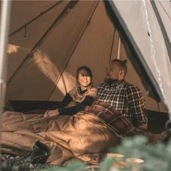 Das Chinook Ursa bietet Platz für bis zu 8 Personen und eignet sich ideal als schnell aufzubauendes Basislager für Gruppen. Das Tipi-Zelt ist mit Zwickeln mit Reißverschluss ausgestattet. Damit kann die gesamte Vorderseite geöffnet werden. Verwendet werden dazu die Stangen des A-Rahmens der Tür. Auf diese Weise entsteht ein offener, geschützter Wohnraum mit tollem Blick nach draußen zum Beisammensein an sonnigen Tagen. Besonders gefragt ist dieses Zelt im Beduinen-Stil in heißen Gegenden. Die praktische Internal Apex Vent Control lässt sich einfach aus dem Zeltinneren bedienen.