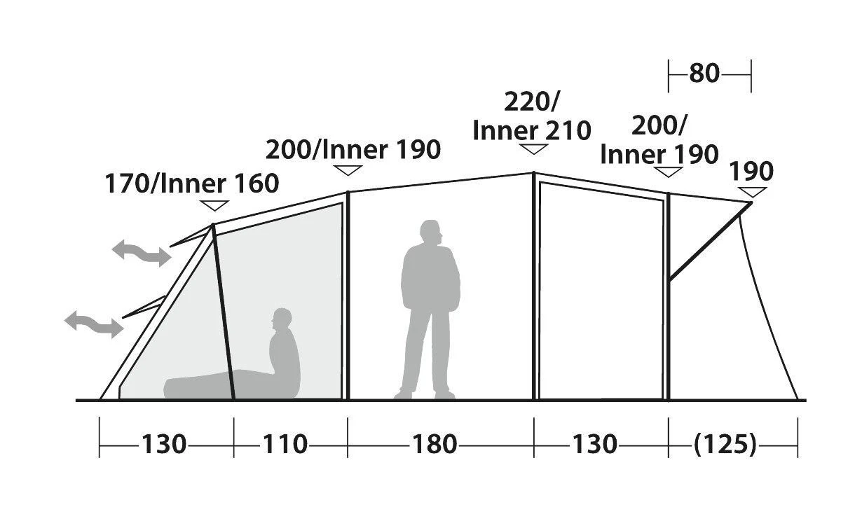 Das Eagle Rock TC 6+2XP hält dank dem verwendeten HydroTex-Polycotton RS ein angenehmes Zeltklima aufrecht. Über die hinteren und die niedrig angeordneten Lüftungsöffnungen wird die Luftzufuhr reguliert. Unterstützt wird dies durch die Netzeinsätze hinter den Außentüren, die beim Lüften Insekten fernhalten. Der großzügige Vorraum schützt den Vordereingang, der sich vollständig zurückrollen lässt. Das Fenster mit Netzeinsatz ist mit einem wasserdichten Vorhang versehen und das obere PVC-Panel hilft dabei, Privatsphäre und Luftstrom perfekt abzustimmen. Das vordere Innenzelt bietet zusätzlichen Stauraum oder einen Schlafplatz für zwei weitere Personen.