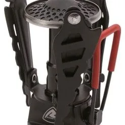Leicht und kompakt. Hartschalenbehälter zum Schutz während des Transports im Lieferumfang enthalten. Lässt sich direkt an der Gaskartusche anbringen. Die Kartusche dient als Standfuß für den Kocher. Ausklappbarer Topfhalter.