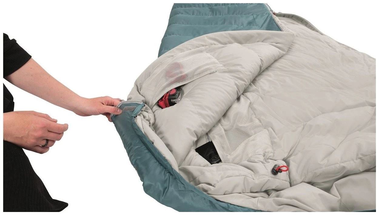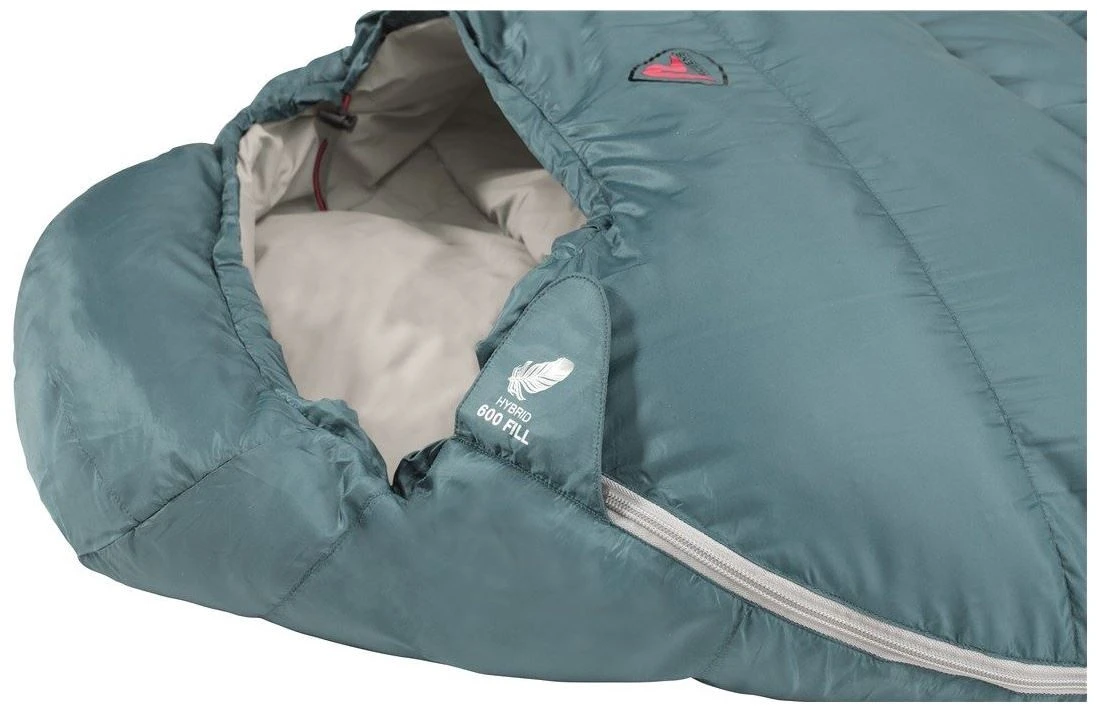Komfortable Mumien-Form für mehr Bewegungsfreiheit. Hybrid-Bauweise: Oberseite – Daunenmischung für eine erstklassige Dämmung; Unterseite – MicroThermo Ball für minimale Wärmeverluste durch Kompression und Feuchtigkeitsaufnahme. 2 große innenseitige Netztaschen, sodass kleine Dinge immer griffbereit sind. Kissenfach mit Reißverschluss in der Kapuze. MicroThermo Ball im Fuß- und Kapuzenbereich schützt vor Feuchtigkeitsaufnahme und Kondensation durch den anliegenden Außenstoff. 5% MicroThermo-Ball-Fasern an der oberen Hybridfüllung unterstützen die Daunen bei feuchten Bedingungen. Überarbeitete Position des Wärmekragens und des Profils minimiert Zugluft und Wärmeverlust. Einklemmschutz. Durch die verschiedenen Stärken der Kapuzenkordelzüge ist ein schnelles und einfaches Anpassen mit nur einem Griff möglich.