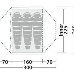 Das Kuppelzelt Lodge Pro 3 mit kurzer, querlaufender Firststange bietet dank der beiden Vorräume ein hohes Maß an Flexibilität. Die Höhe und Breite im Zelt ist ideal für drei Camper. Zudem sorgt das durchdachte, rechteckige Innenzelt mit vertikalen Türen für eine besonders effiziente Ausnutzung des Platzes. Die Außentüren lassen sich flexibel öffnen und bieten einen mühelosen, windgeschützten Zugang zum Zelt. Zur Unterstützung der niedrig angeordneten und der von innen anpassbaren oberen Lüftungsöffnungen können beide Türen geöffnet werden, sodass ein Durchzug entsteht. Die Stangenkanäle an den kurzen Enden erleichtern den Überblick über das Leichtmetall-Gestänge und beschleunigen das Aufstellen.
